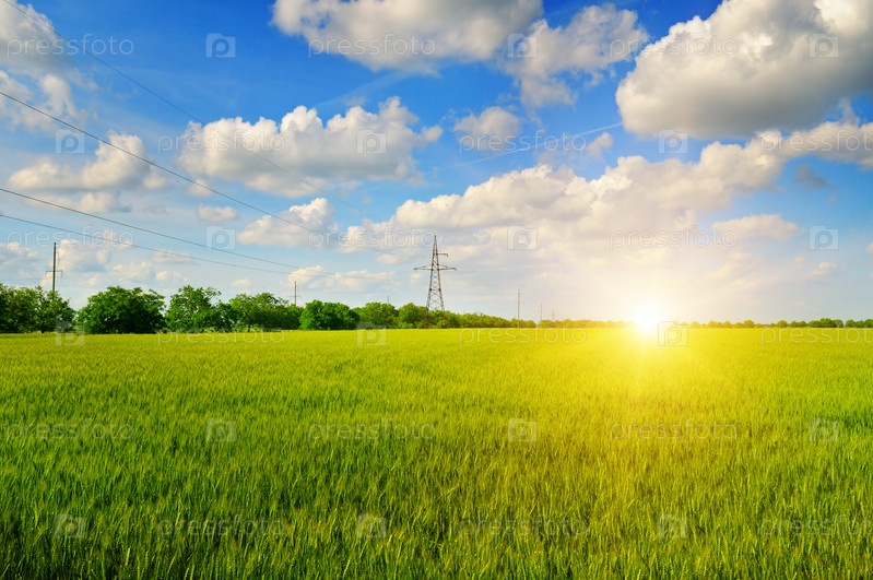 Пшеничное поле и восход солнца