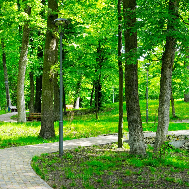 Летний парк с дорожками для прогулок