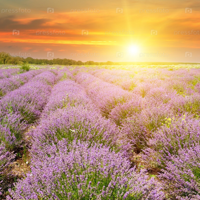 Поле цветущей лаванды и восход солнца