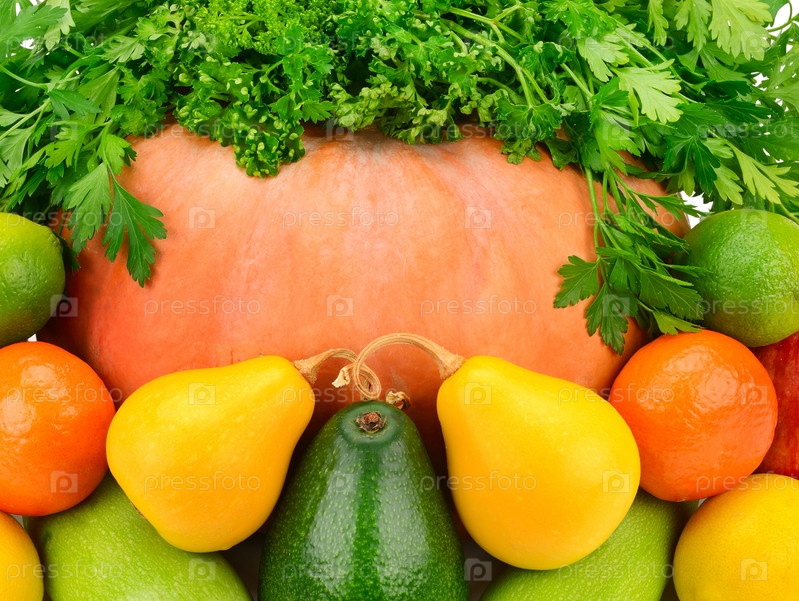 Яркий фон из фруктов и овощей