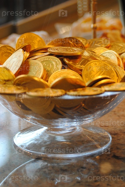 Шоколадные монеты в вазе