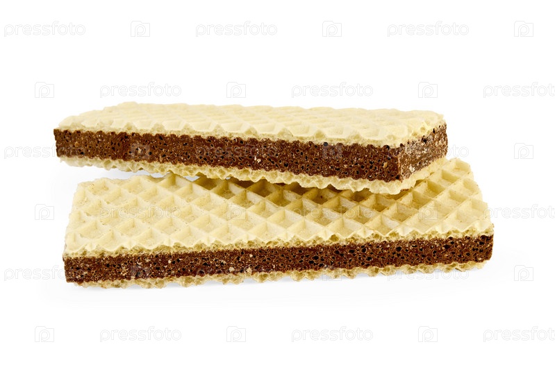 Две вафли с прослойкой из пористого шоколада на белом фоне