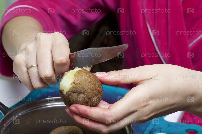 Женщина чистит картошку