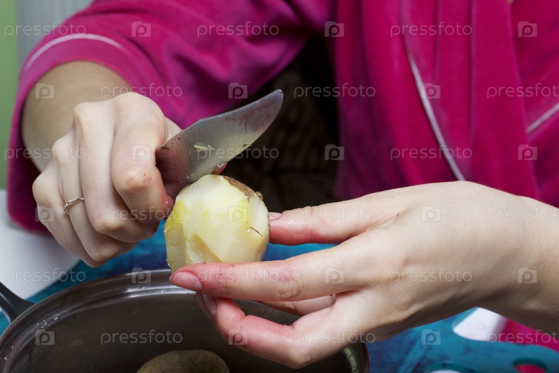 Женщина чистит картошку