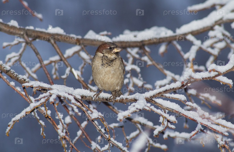 Воробей на снежной ветке