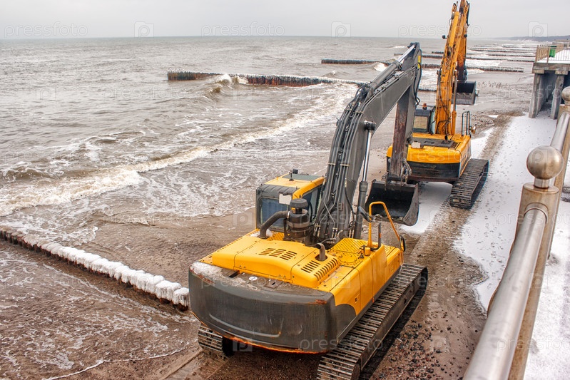 Два экскаватора на пляже