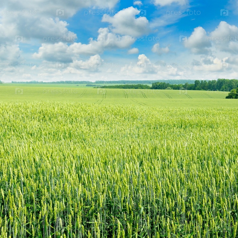 Поле и голубое небо с легкими облаками