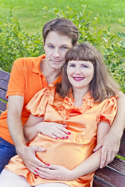 Муж обнимает беременную жену