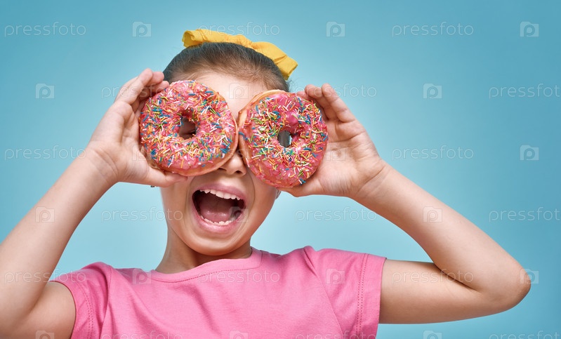 Веселая девочка с пончиками