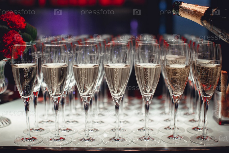 Много бокалов с шампанским