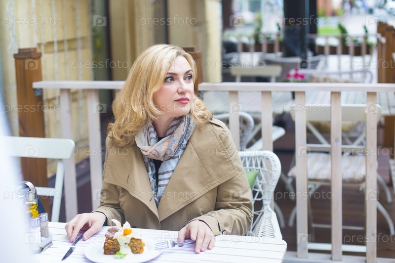 Женщина в кафе на открытом воздухе