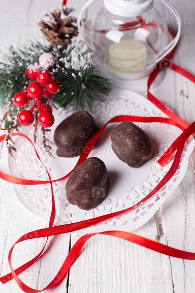 Шоколадные конфеты и рождественские аксессуары