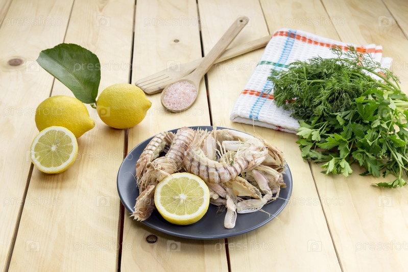 Морепродукты с лимонами