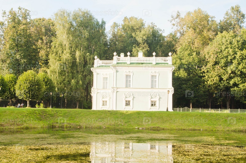 Зеленый дом на берегу пруда