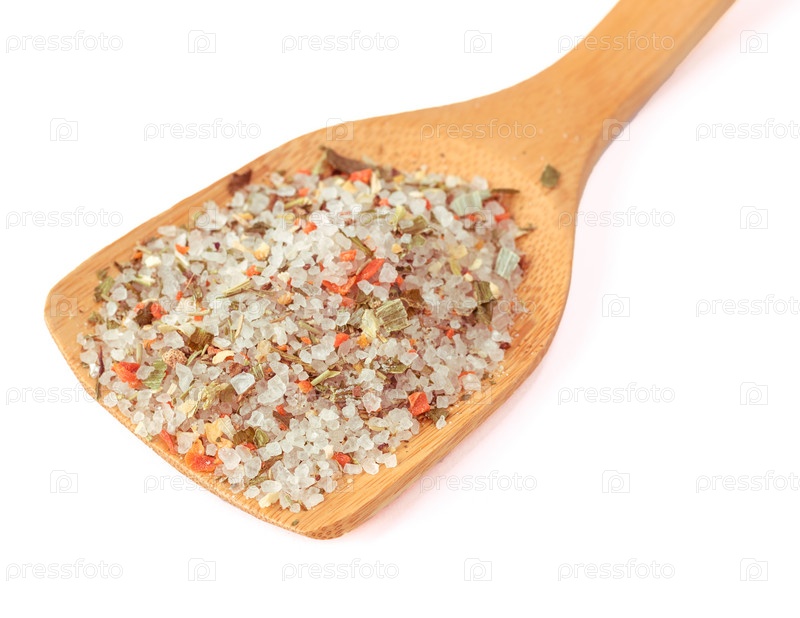 Деревянная ложай с морской солью и специями