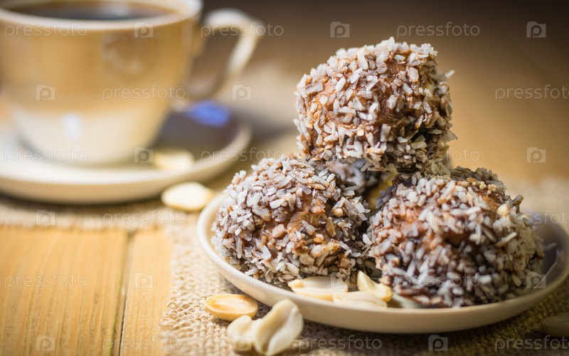 Домашнее печенье с арахисом, кокосом и какао