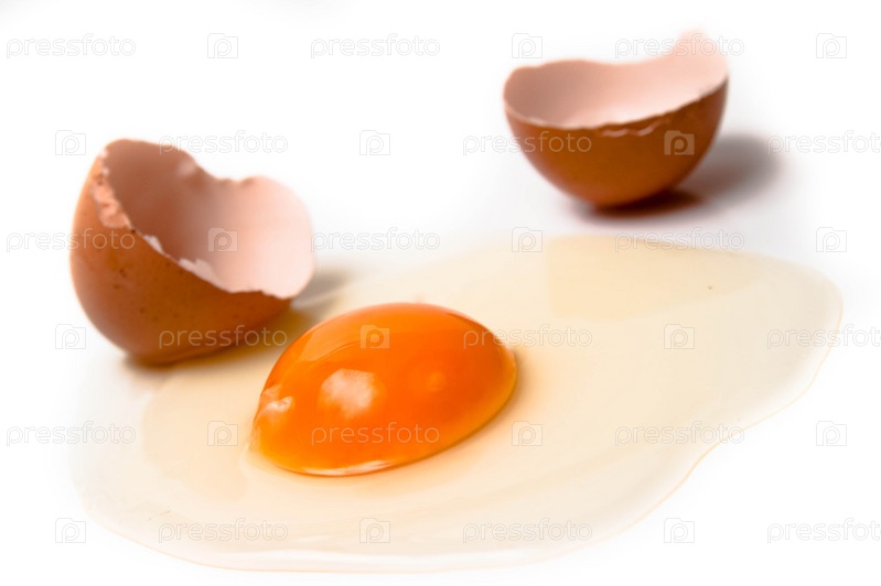 Разбитое яйцо на белом фоне