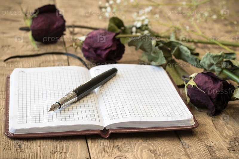 Увядшие розы с блокнотом