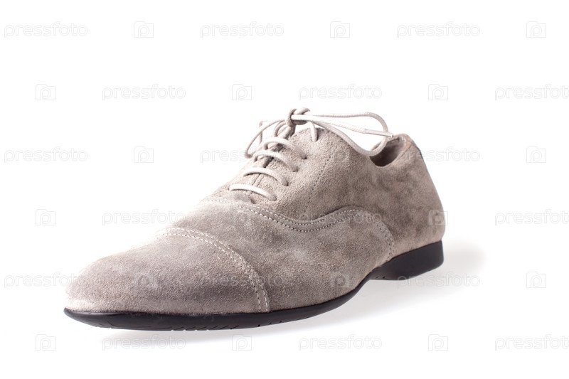 Серый мужской ботинок на белом фоне