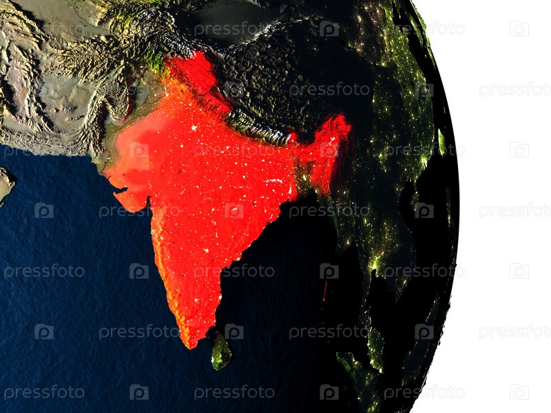 Индия из космоса во время заката