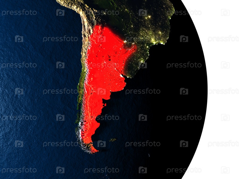 Аргентина из космоса во время заката