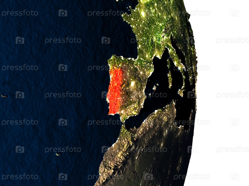 Португалия из космоса во время заката