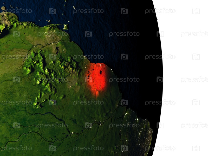 Суринам из космоса во время заката