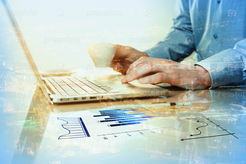 Рука на клавиатуре и кофе