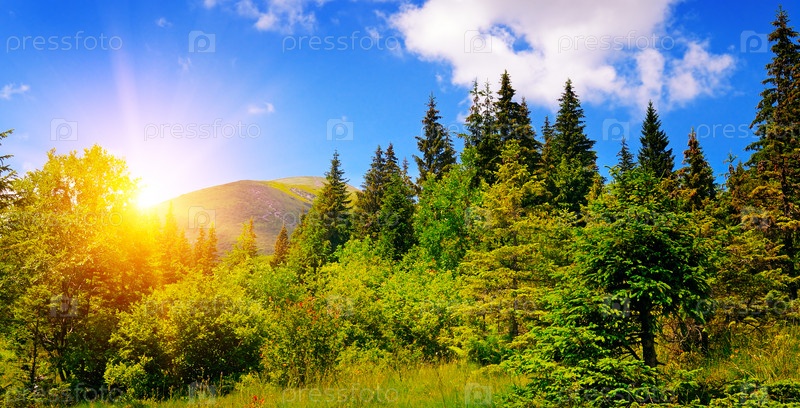 Красивый горный пейзаж и восход солнца