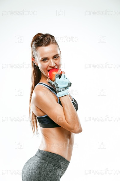 Здоровая молодая женщина с яблоком