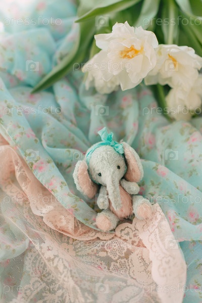 Плюшевый слон и букет