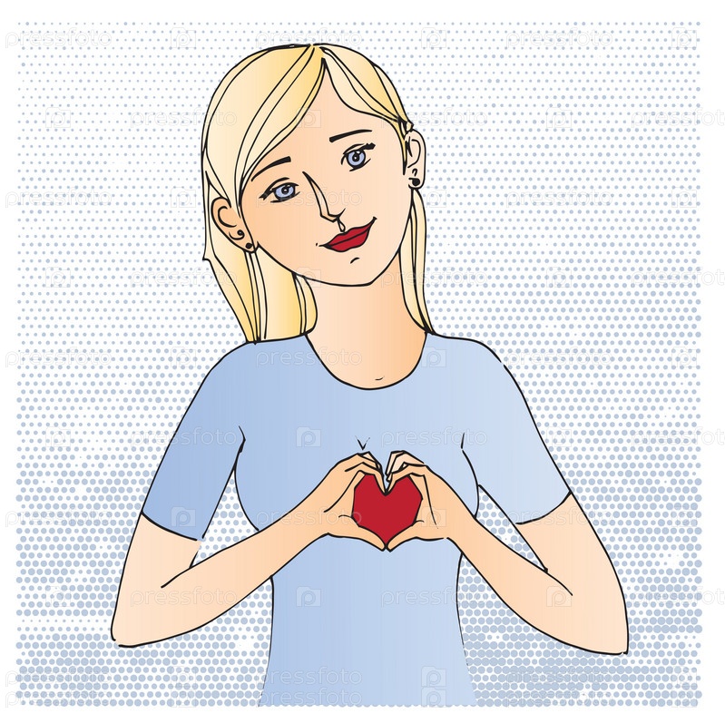 Красивая молодая блондинка с красным сердцем
