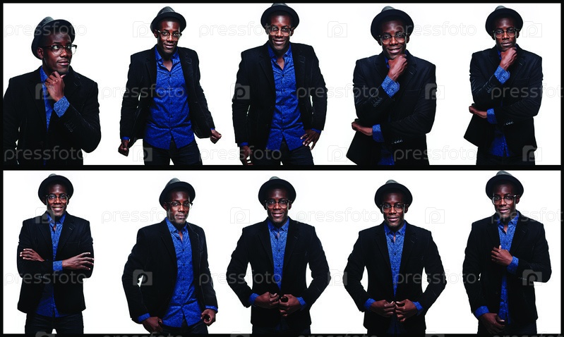 Коллаж счастливый афроамериканец