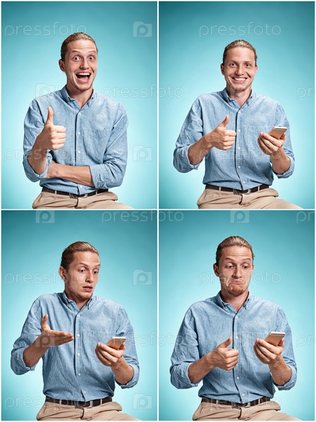 Молодой человек с различными эмоциями