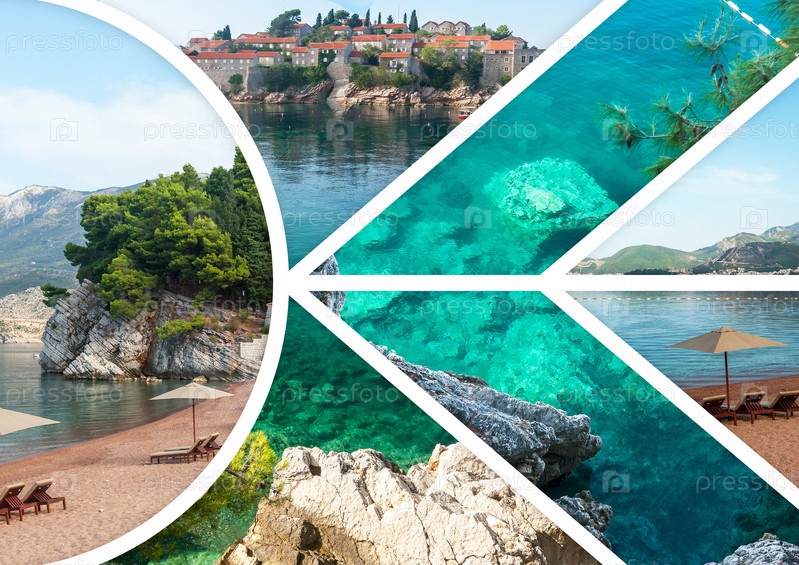 Коллаж остров Свети-Стефан в Черногории