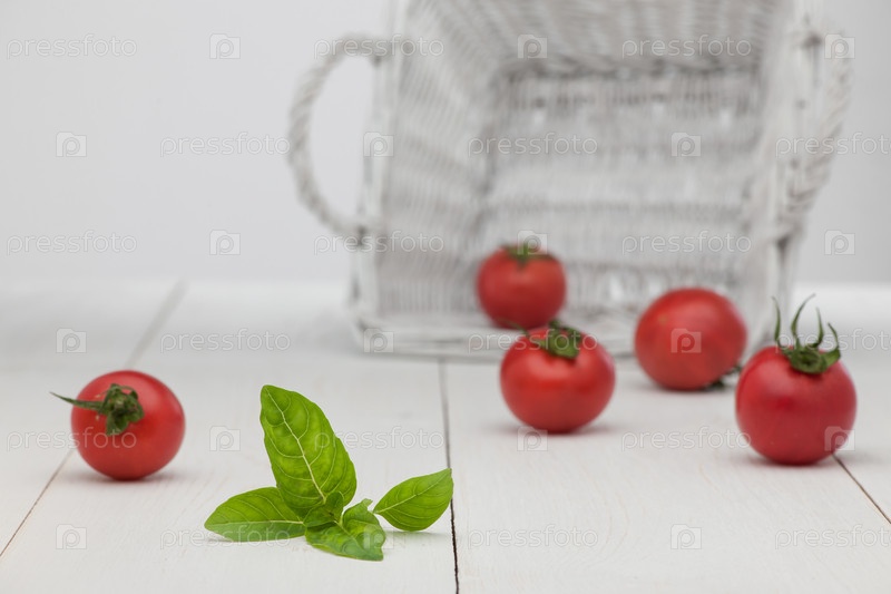 Помидоры в белой корзине
