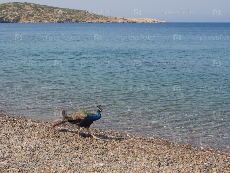 Павлин на пляже