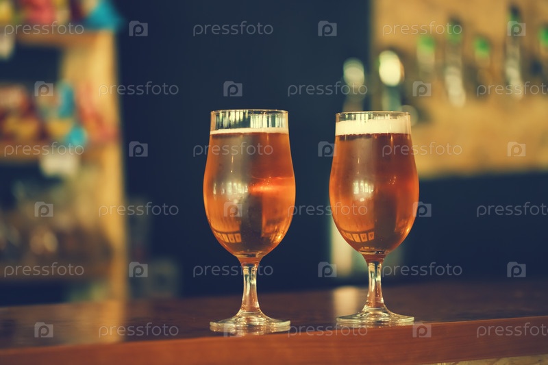 Два бокала свежего холодного пива