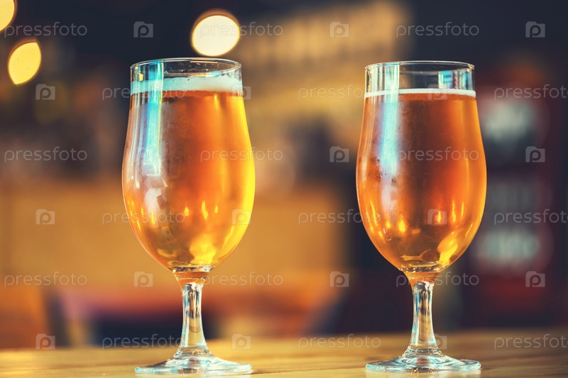 Два бокала свежего холодного пива