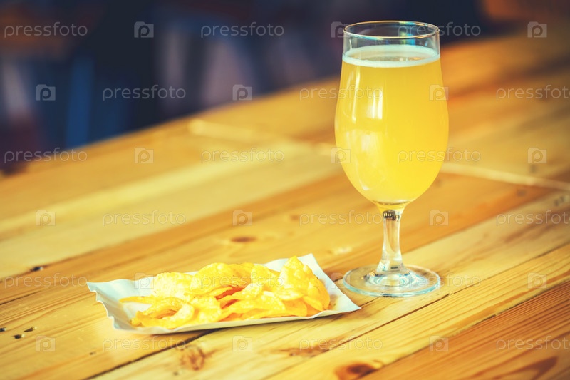 Бокал холодного свежего пива с чипсами