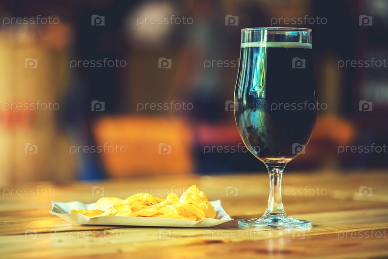 Бокал холодного свежего пива с чипсами