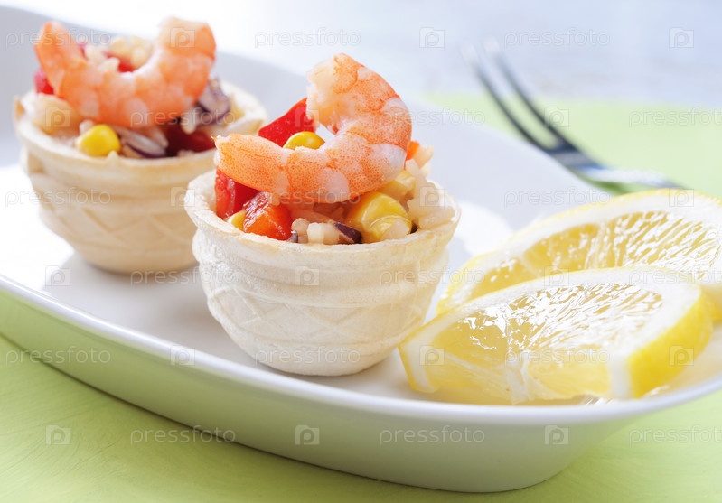 Корзинка с салатом и креветками