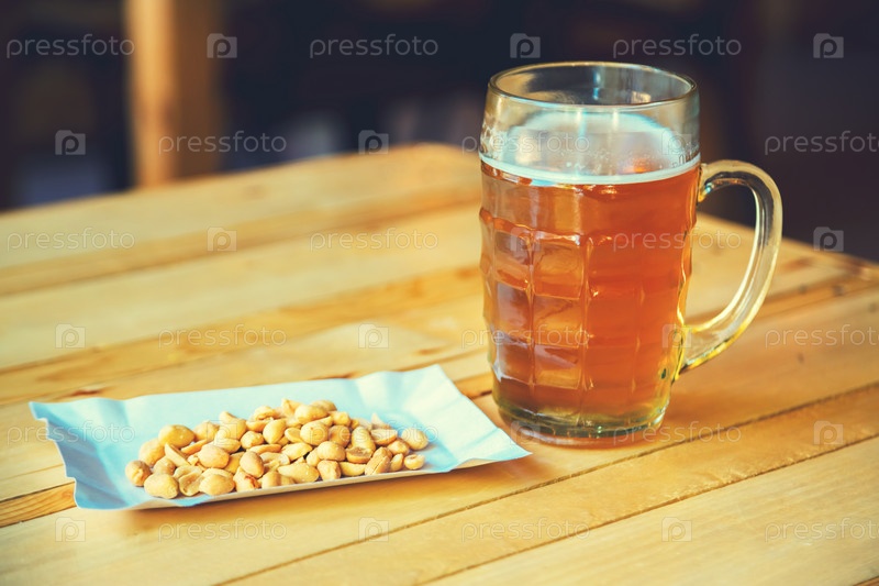 Стакан холодного пива и соленый арахис