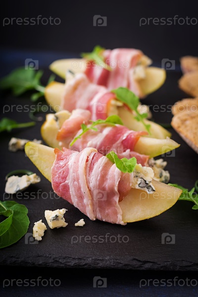 Закуска с грушей, голубым сыром и ветчиной