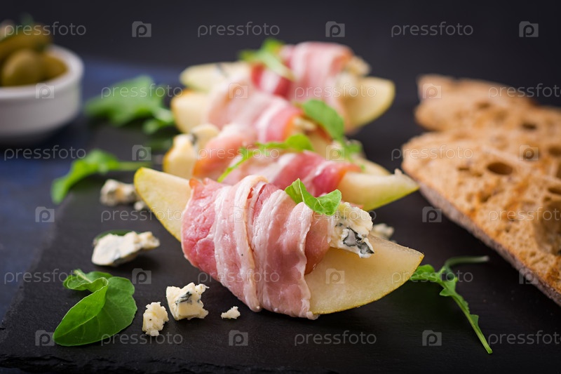 Закуска с грушей, голубым сыром и ветчиной