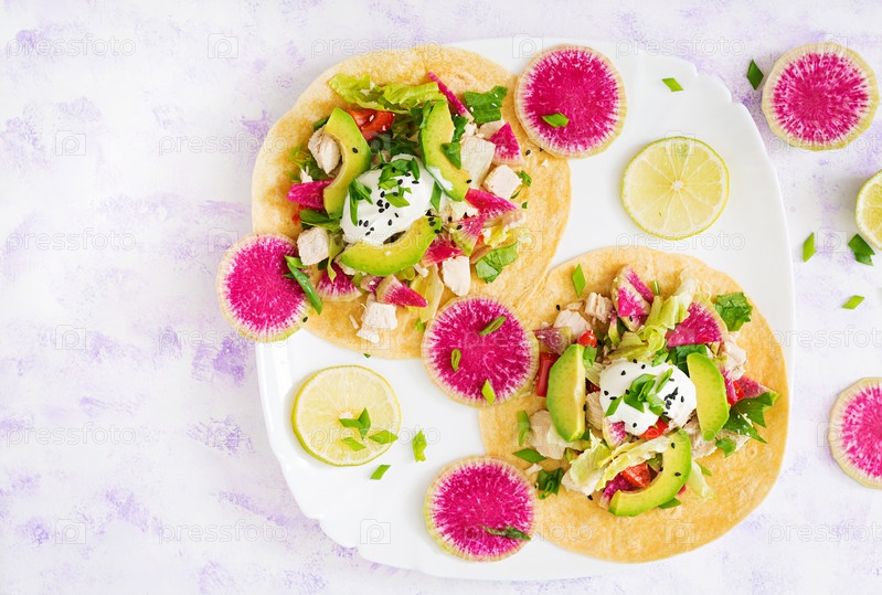 Здоровая мексиканская тако с вареной куриной грудкой
