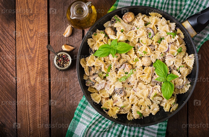 Макароны с грибами в сливочном соусе