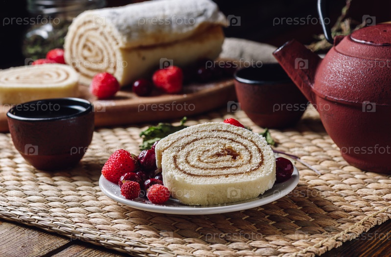 Бисквитный рулет с ягодами