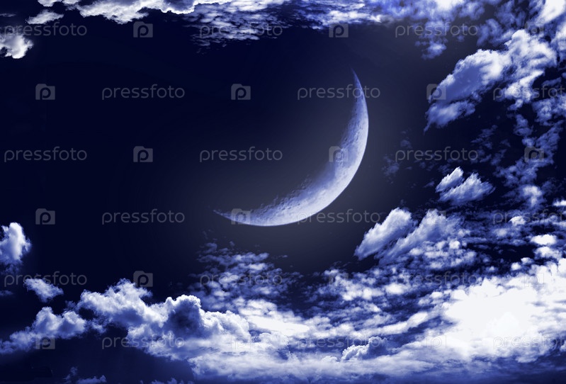 Половина Луны в облаках