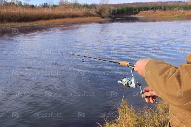 Рыбак со спиннингом на реке